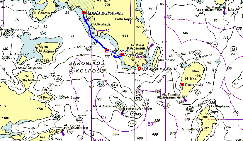 Alright…here’s our tale of woe. We left Piraeus at 1500 hrs…we felt like motoring instead of sailing because it was blowing directly at us and we were limited in our daylight hours available. We marvel at the unbelievable blue of these waters!